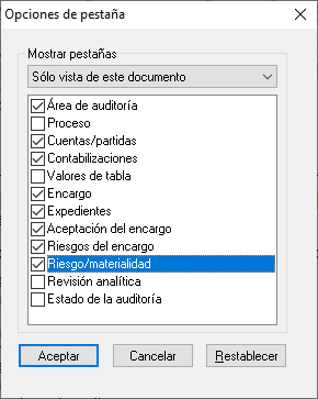 Pestaña "Área de auditoría"